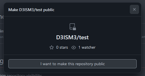 After confirming the change, GitHub will update the repository visibility. The repository will now be visible to everyone, and anyone can clone, fork, or contribute to it.